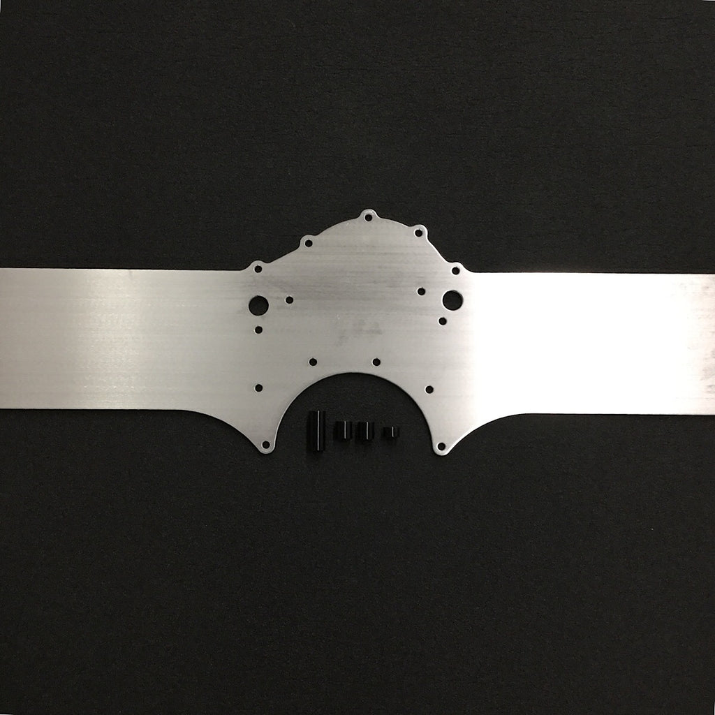 The BBF Stock Timing Cover / Fuel Pump Delete Universal Motor Plate is cut 35" wide so it can be trimmed down to fit your specific application. It is water jet cut from 1/4" 6061-t6 aluminum. Comes with Stock Timing Cover spacer kit Part # RC81083. For 429/460 BBF