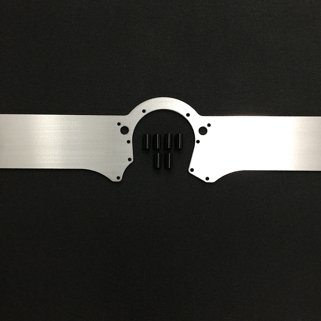 The SBF (302-351) Stock Timing Cover universal motor plate is cut 35" wide so it can be trimmed down to fit your specific application. It is water jet cut from 1/4" 6061-t6 aluminum. Comes with Stock Timing Cover spacer kit Part # RC80427.
