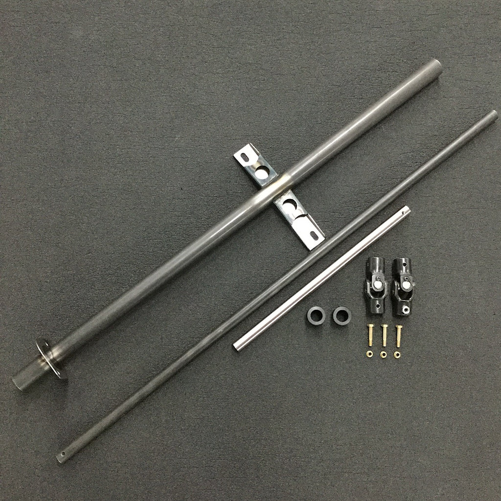 1994-2014 Mustang Bolt In Tubular Steering Column Steering columns bolt directly to the factory location there are no dash modifications required. The firewall end of the column locates the universal joint basically in the factory location and can be trimmed to move the joint even closer. The steering wheel end of the tube is designed extra long to be trimmed to desire length for: quick release, steering wheel, or seat location. Column can be spaced down at the rear mount to move steering wheel down as well.